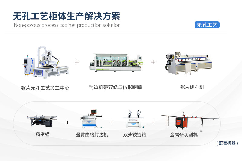无孔工艺柜体出产处理计划,首要由无孔工艺加工中间、锯片侧孔机、全主动封边机三种装备构成,可用于加工出产板式家具、橱柜、衣柜、儿童家具等柜体的出产加工,知足家具出产厂家对无孔家具(利用隐形毗连件毗连)、板式家具(利用二合一、三合一毗连件)及通俗板式家具的加工需要。